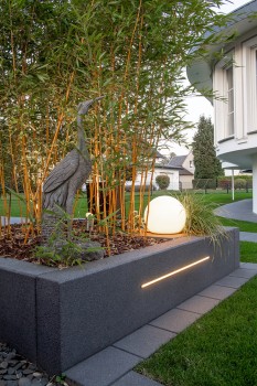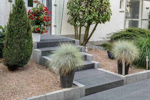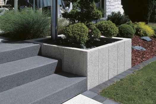 Das Alessio-Stelensystem gibt der Gestaltung viele Möglichkeiten. Als senkrechte Stele, liegender Mauerstein oder als Einfassungselement. Aber immer mit aufwendig gestrahlten Sichtflächen, deren Natursteinkörnung durch ein speziell entwickeltes Verfahren freigelegt wird. Farblich perfekt abgestimmt auf das Pflaster- und Plattenprogramm. Für Ästhetik in vielen Funktionen.