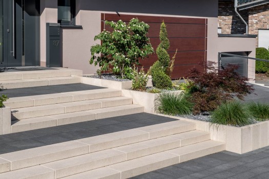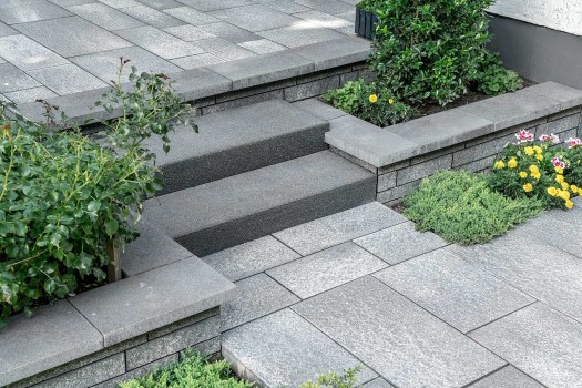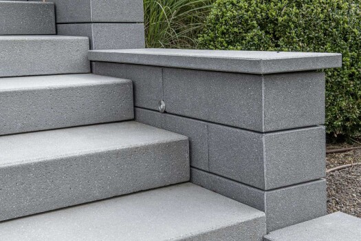 Blockstufen eignen sich besonders für den Einsatz bei nicht vorhandenen Betonunterkonstruktionen. Mit Hilfe von Blockstufen lassen sich Treppenanlagen schnell und massiv erstellen. Das Tocano-Stufenprogramm bietet gestrahlte Ansichtsflächen in neun verschiedenen Farben, die farblich auf die Pflaster- und Plattensysteme abgestimmt sind. Sollten Sie darüber hinaus weitere Farben, andere Oberflächenbearbeitungen oder individuelle Abmessungen wünschen, bietet Ihnen das ConceptDesign-Sortiment nahezu unbegrenzte Möglichkeiten.