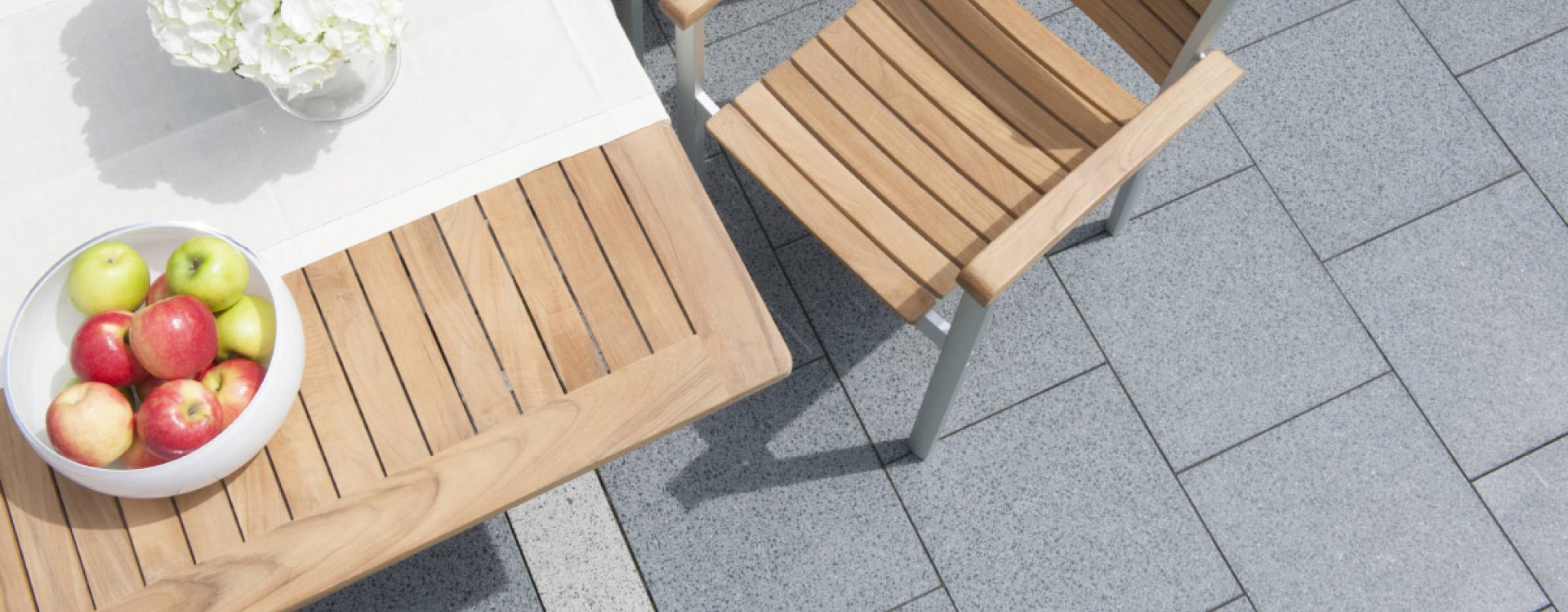 Achten Sie auf jeden Fall darauf, dass das Gefälle Ihrer gegossenen Betonplatte ausreicht, um stehendes Wasser auf der Fläche zu vermeiden. Es darf kein Nässestau entstehen so dass, die verlegten Betonwerkstein-Platten „nassen Füße“ bekommen, da dies unter Umständen zu Verfärbungen, dunklen Rändern und gegebenenfalls zu langwierigen Ausblühungen führen kann.